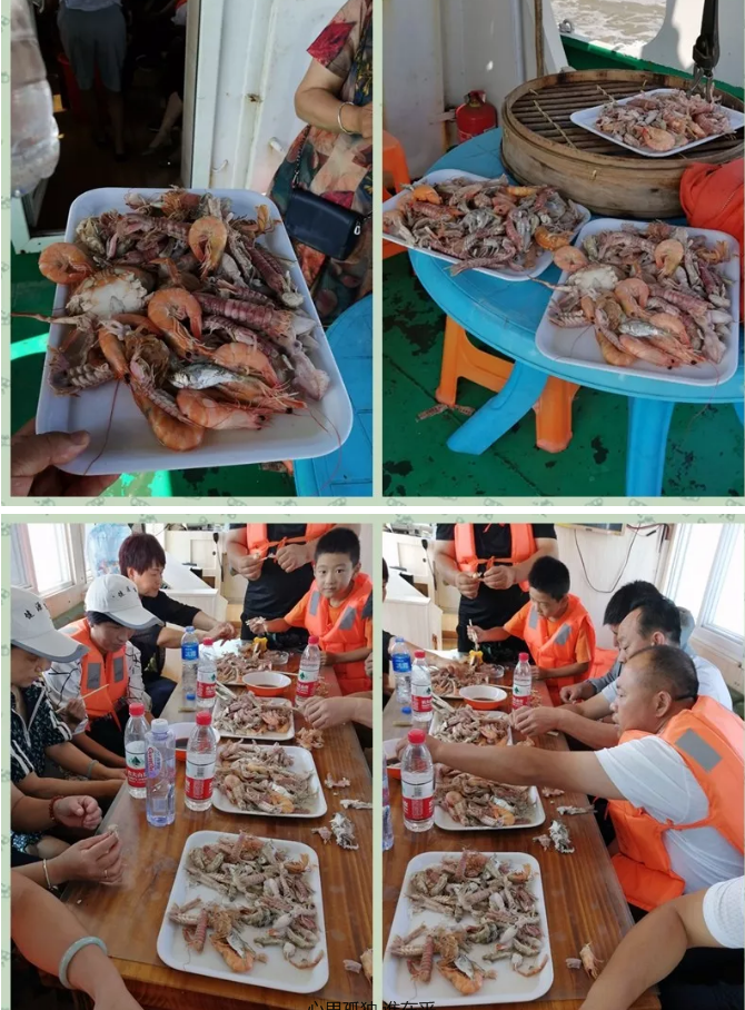 漁船在經(jīng)驗豐富的船老大帶領下慢慢行駛,無邊的海域沒有邊界的延伸著。大家在船老大的指揮下體驗撒網(wǎng)、撈網(wǎng)。激動的時刻是漁網(wǎng)出水,大家迫不及待地想看看撈了些什么寶貝上岸。有梭子蟹、蝦,還有不知名的海洋生物,滿滿的一大筐的海洋寶貝。