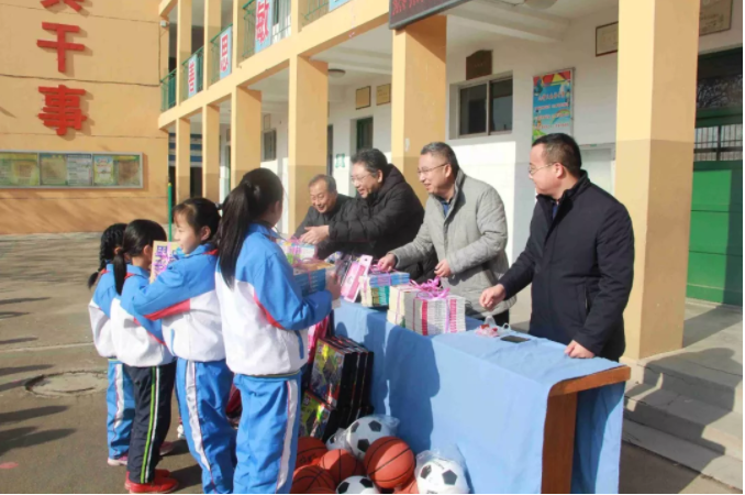 一本書傳遞一份愛,一份愛成就一個夢想,一個夢想讓無限希望起航,愛心就像一個蒲公英,和著暖陽來到了校園。元旦將至,歲寒情深,2019年12月27日,九三學(xué)社與山東健源生物科技有限公司共同為泰安市高新區(qū)化馬灣小學(xué)捐贈了一批書籍、學(xué)習(xí)用品和體育器材,為學(xué)生和老師們送去社會的關(guān)心、關(guān)懷和關(guān)愛。