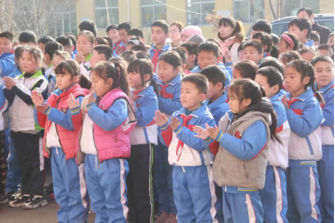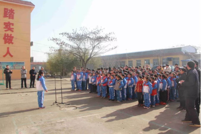 11時整,全校老師和同學(xué)們相聚在學(xué)校操場,愛心捐贈活動正式開始,出席本次捐贈活動的有:九三學(xué)社的劉彥濤秘書長、侯家華主委、泰安市化馬灣鎮(zhèn)教委彭主任與健源生物董事長王誠先生、總經(jīng)理助理兼辦公室主任王玲女士。學(xué)校張校長對九三學(xué)社與山東健源生物科技有限公司的捐贈表示感謝,感謝九三學(xué)社以及社會各界對學(xué)校教育的關(guān)注和支持,感謝在寒冬里送來溫暖和祝福。并告誡全校師生要懂得感恩,將這份愛心傳遞下去。