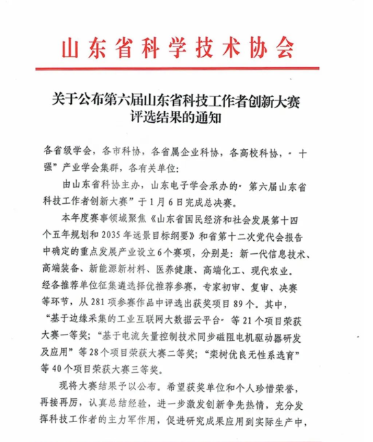 祝賀山東健源生物榮獲第六屆科技工作者創(chuàng)新大賽二等獎(jiǎng)