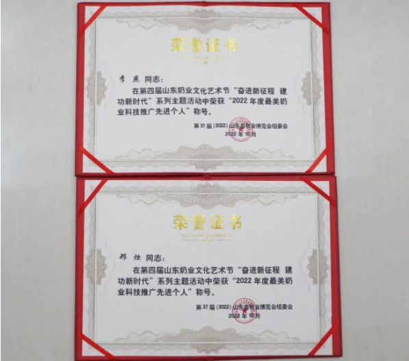 山東健源生物技術(shù)部總監(jiān)李燕、外宣部主任邢燭榮獲“2022年度最美奶業(yè)科技推廣先進(jìn)個(gè)人”稱號(hào)