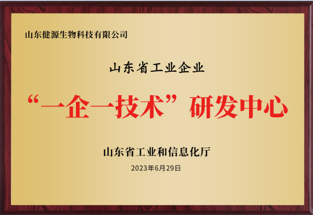 山東健源生物被認定為2023年山東省“一企一技術(shù)”研發(fā)中心
