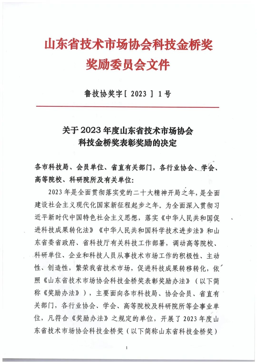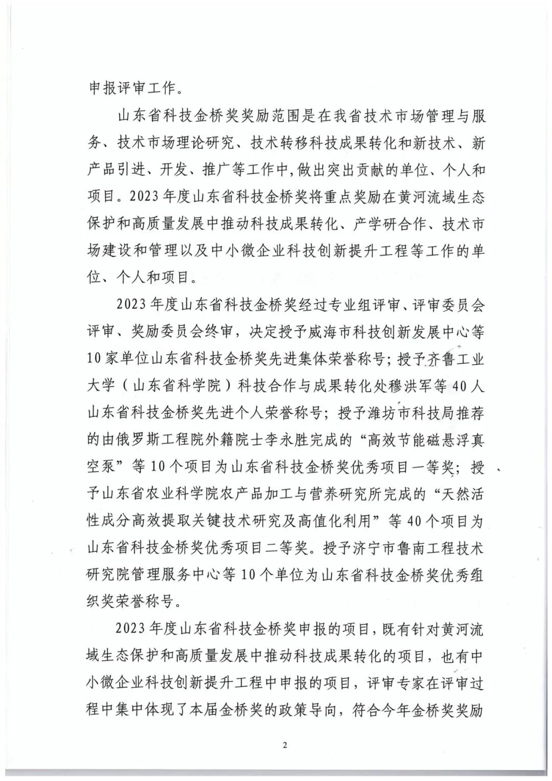 附:2023年度山東省技術(shù)市場協(xié)會科技金橋獎獎勵委員會文件及優(yōu)秀項目一等獎名單