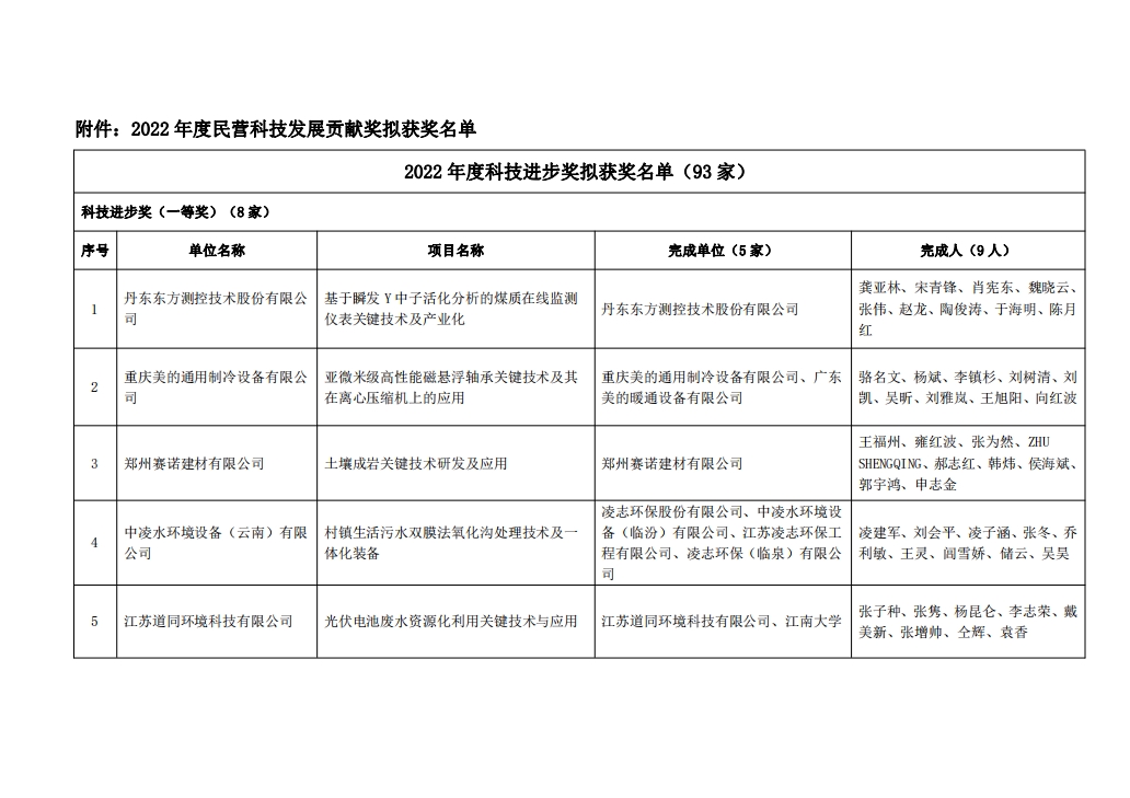 根據(jù)《民營科技發(fā)展貢獻獎獎勵辦法》和《民營科技發(fā)展貢獻獎獎勵實施細則》規(guī)定,以及《關于組織申報2022年度民營科技發(fā)展貢獻獎的通知》要求,組織評選“2022年度民營科技發(fā)展貢獻獎”,本次獎項評出科技進步獎93項(一等獎8項,二等獎32項,優(yōu)秀獎53項);科技創(chuàng)新70項(一等獎8項,二等獎26項,優(yōu)秀獎36項);重點高新技術企業(yè)獎82家;優(yōu)秀民營科技企業(yè)獎66 家;杰出民營企業(yè)家獎22人。