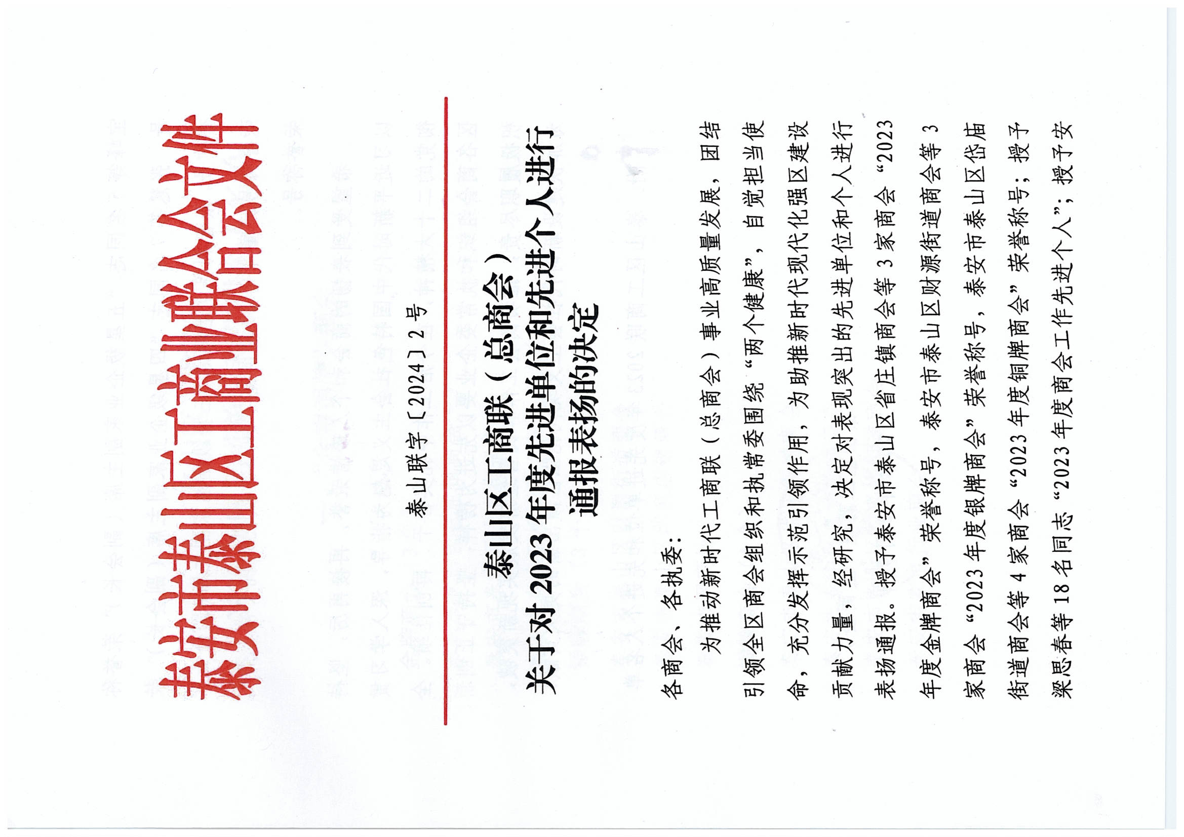 董事長王誠榮獲泰山區(qū)工商聯(lián)“2023年度優(yōu)秀執(zhí)(常)委”榮譽稱號