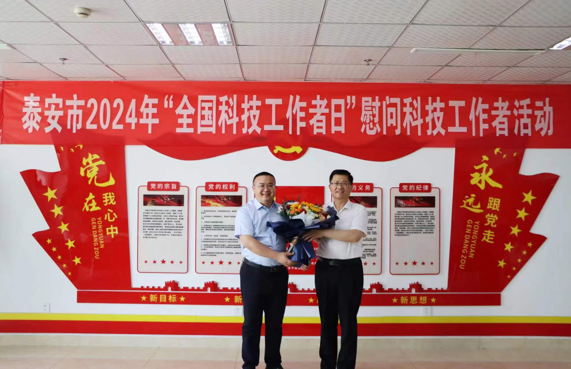 5月24日上午,泰安市科協(xié)黨組成員、副主席范寶品帶隊(duì)到山東健源生物科技有限公司慰問(wèn)2023年度“齊魯最美工程師”獲得者王誠(chéng)董事長(zhǎng),贈(zèng)送鮮花,并致以節(jié)日的問(wèn)候和祝福。