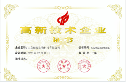2023-2-11 祝賀山東健源生物再次通過(guò)國(guó)家高新技術(shù)企業(yè)認(rèn)定