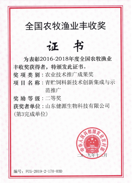 根據(jù)農(nóng)業(yè)部關(guān)于2016-2018年度農(nóng)牧漁業(yè)豐收獎獲獎情況的通報,山東健源生物科技有限公司和山東...