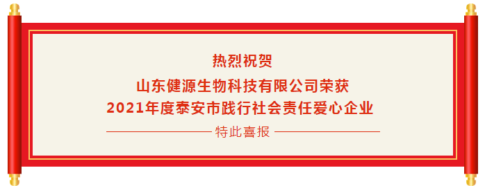 熱烈祝賀山東健源生物科技有限公司榮獲2021年度泰安市踐行社會責任愛心企業(yè)