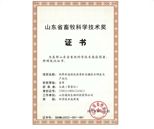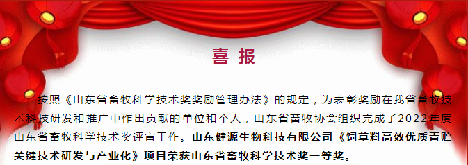 【喜報(bào)】山東健源生物榮獲山東省畜牧科學(xué)技術(shù)獎(jiǎng)一等獎(jiǎng)