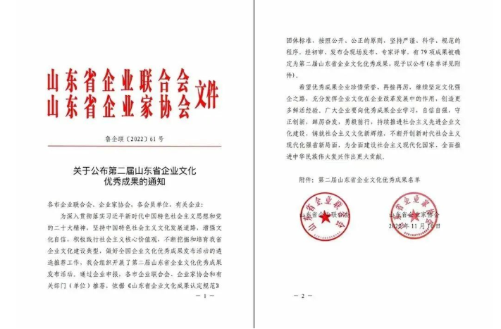 深入貫徹落實(shí)習(xí)近平新時(shí)代中國(guó)特色社會(huì)主義思想和黨的二十大精神,堅(jiān)持中國(guó)特色社會(huì)主義文化發(fā)展道路,增強(qiáng)文化自信,積極踐行社會(huì)主義核心價(jià)值觀(guān),不斷挖掘和培育我省企業(yè)文化建設(shè)典型,做好全國(guó)企業(yè)文化優(yōu)秀成果發(fā)布活動(dòng)的遴選推薦工作。山東省企業(yè)聯(lián)合會(huì)、山東省企業(yè)家協(xié)會(huì)聯(lián)合開(kāi)展了第二屆山東省企業(yè)文化優(yōu)秀成果發(fā)布活動(dòng)。通過(guò)企業(yè)申報(bào),各市企業(yè)聯(lián)合會(huì)、企業(yè)家協(xié)會(huì)和有關(guān)部門(mén)(單位)推薦,依據(jù)《山東省企業(yè)文化成果認(rèn)定規(guī)范》團(tuán)體標(biāo)準(zhǔn),按照公開(kāi)、公正的原則,堅(jiān)持嚴(yán)謹(jǐn)、科學(xué)、規(guī)范的程序,經(jīng)初審、發(fā)布會(huì)現(xiàn)場(chǎng)發(fā)布、專(zhuān)家評(píng)審,有79項(xiàng)成果被確定為山東省企業(yè)文化優(yōu)秀成果,山東健源生物科技有限公司《“誠(chéng)”辦良心企業(yè),企業(yè)文化推動(dòng)科技創(chuàng)新》企業(yè)文化成果榮獲第二屆山東省企業(yè)文化優(yōu)秀成果二等獎(jiǎng)。