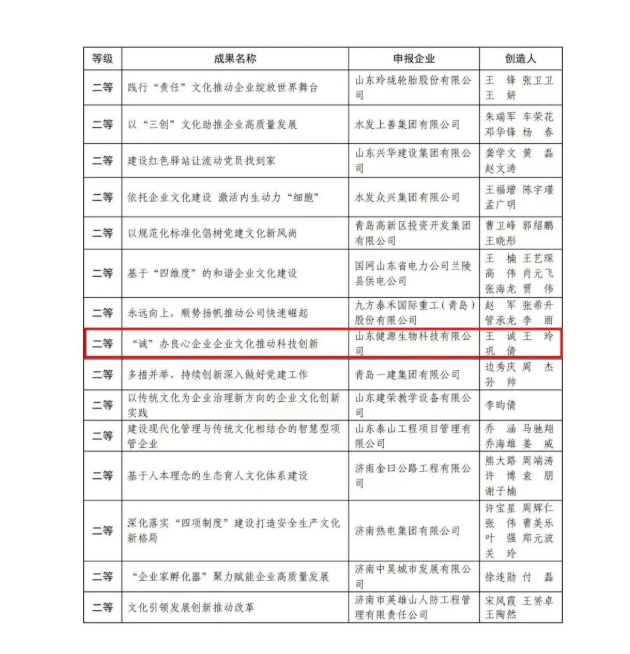 健源生物榮獲第二屆山東省企業(yè)文化優(yōu)秀成果二等獎(jiǎng)